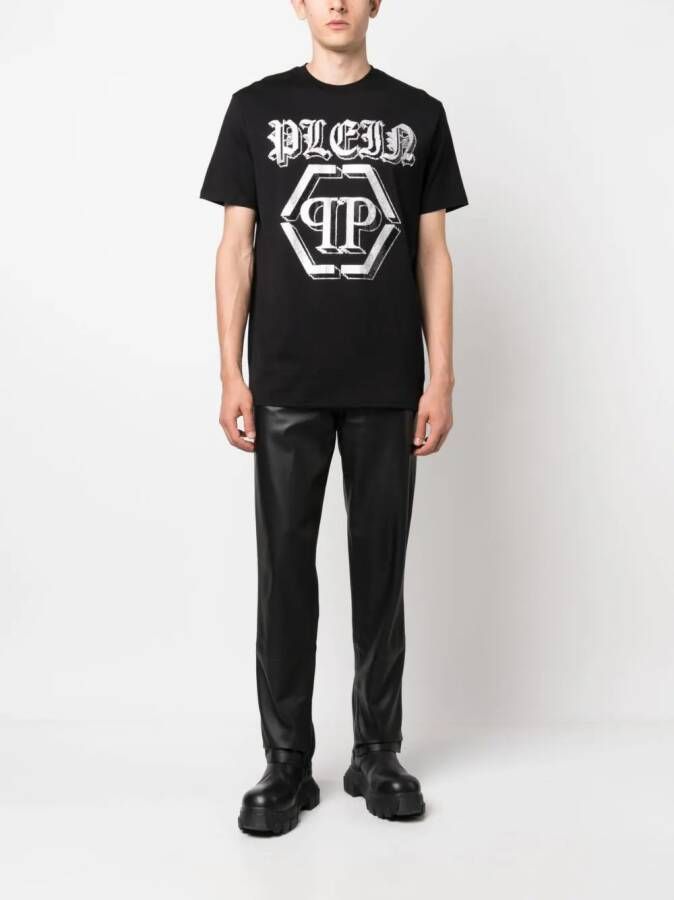 Gitzwart, jersey gebreid, verfraaid met bergkristallen, logoprint op de voorkant, effen logoplakkaat, ronde hals, korte mouwen en rechte zoom.