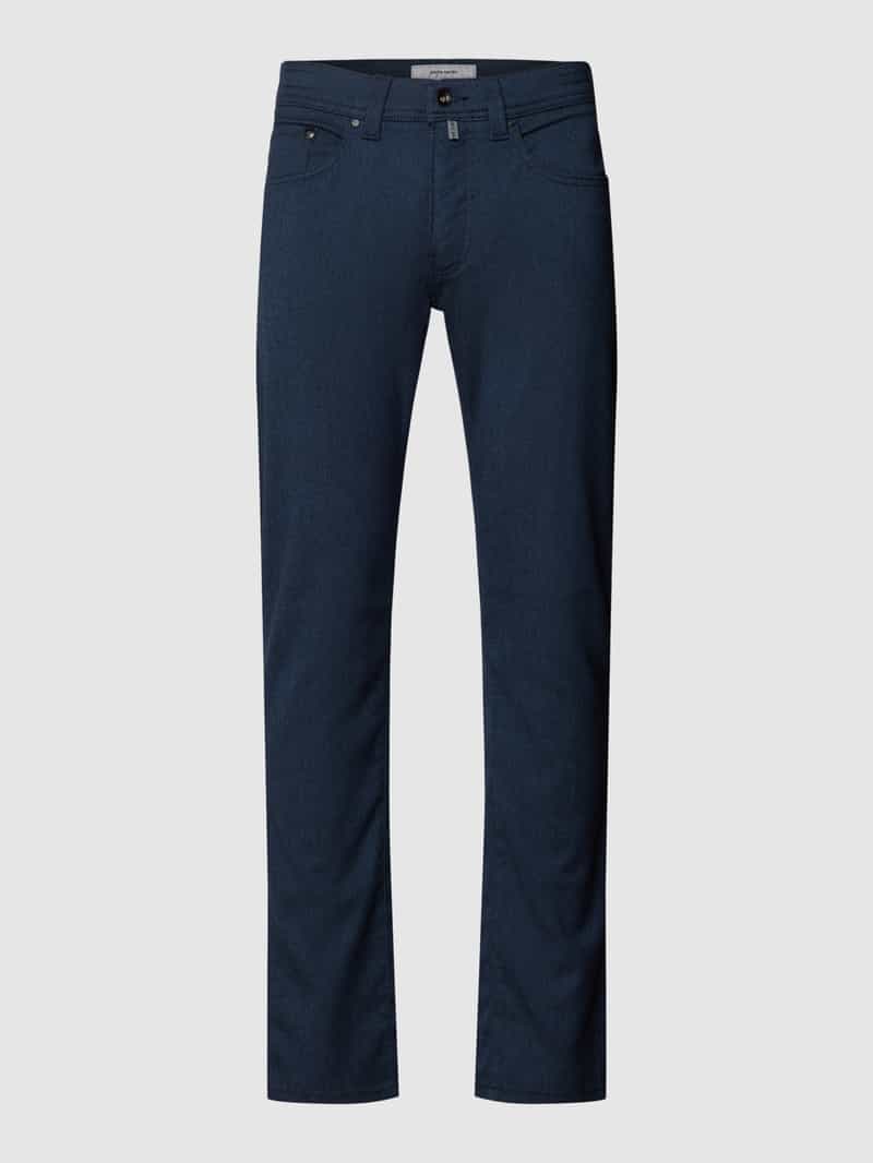 Stoffen broek voor heren van Pierre Cardin. Elastische materiaalmix met viscose. Tapered fit. Melangelook. Knoop- en ritssluiting. 5 kieszeni. Bandwijdte bij maat 32/32: 42 cm. Binnenbeenlengte bij maat 32/32: 81 cm