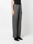Beluga grijs, logo tailleband, ruiten, geplooide details, high-waist, straight-fit, elastische tailleband en twee ingenaaide zijzakken.