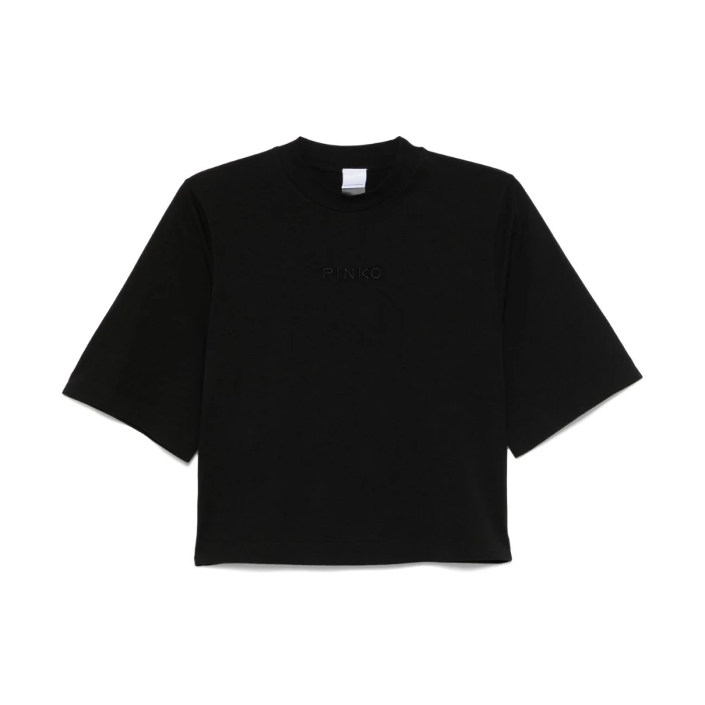 Upgrade je garderobe met deze Pinko zwarte t-shirt met ronde hals voor vrouwen, met korte mouwen.
