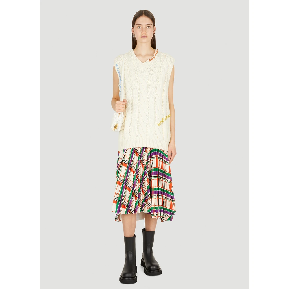 Maak kennis met de Pleated Checked Skirt van Plan C. Deze gedurfde en levendige rok is ontworpen voor de moderne vrouw die houdt van onconventionele pasvormen en tactiele stoffen. Gemaakt van een technische stof in een geweven weefsel, heeft het een hoge taille, elastische tailleband en plooien over de hele rok. De rok heeft een uniek geruit motief en een asymmetrische zoom, wat een edgy touch aan je outfit geeft. Gemaakt in Italië van 100% polyester, is deze rok een must-have voor elke modebewuste vrouw. Alleen chemisch reinigen.