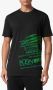 Zwart, neongroen, katoen, all-over logoprint, ronde hals, korte mouwen en rechte zoom.