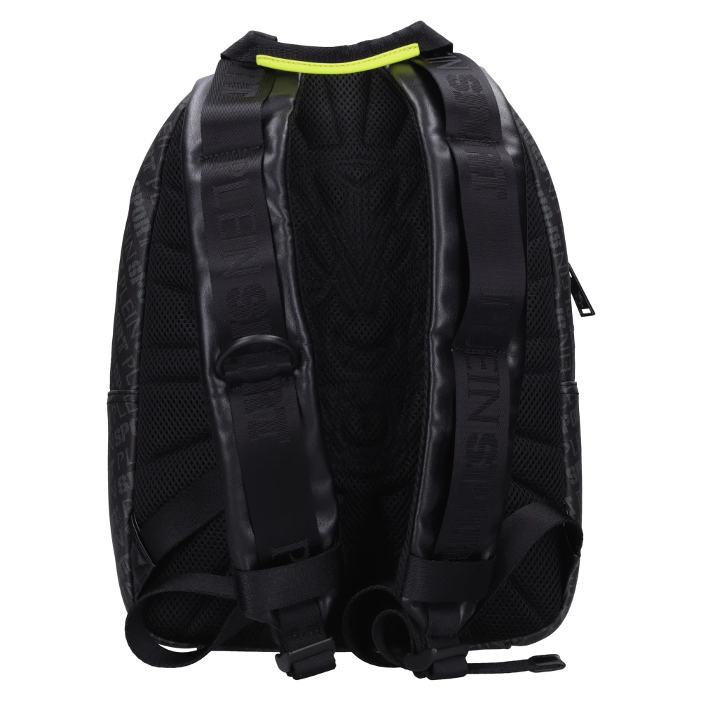 Plein Sport rugzak van imitatieleer voor mannen. 1 hoofdcompartiment, 1 zak, laptopvak, ritssluiting. Verzonden in een transparante zak. Afmetingen: Hoogte 40 cm, Breedte 30 cm, Diepte 14 cm + 3 cm zak.