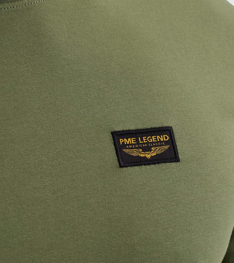 T-shirt van PME Legend voor heren. Mix van katoen en elastaan. Regular fit. Geribde ronde hals. Labelpatch. Ruglengte bij maat M: 71 cm