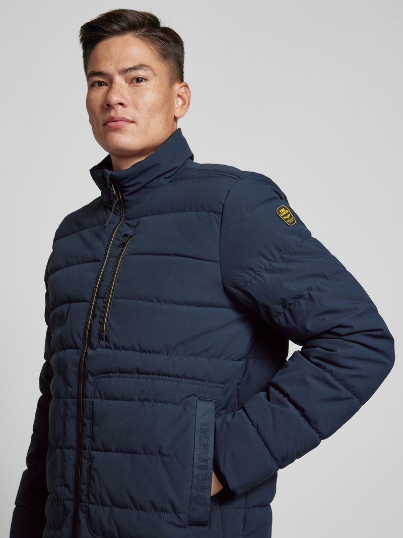 Gewatteerd herenjack van PME Legend. Recht model. Model 'FREIGHTYET'. Opstaande kraag. Deelbare ritssluiting. Borstzak met rits. Steekzakken opzij. Ruglengte bij maat M: 72 cm. Schouderbreedte bij maat M: 46 cm. Borstomvang bij maat M: 59 cm. Mouwlengte bij maat M: 69 cm