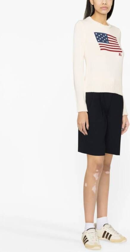 Crmewit, katoen, gebreid materiaal, intarsia gebreid, geribbelde afwerking, ronde hals, lange mouwen en rechte zoom.