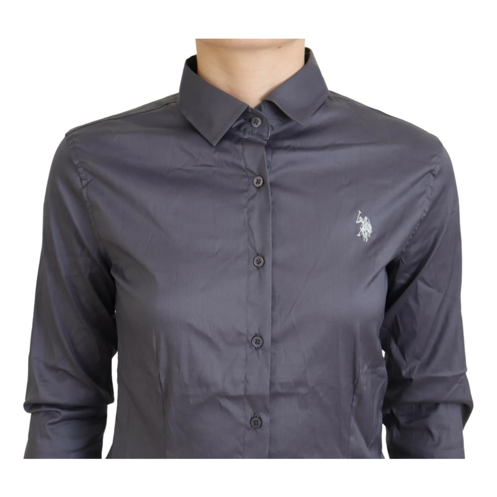 Verrijk je casual elegantie met onze nieuwste aanwinst - een prachtige 100% Authentieke Polo-kraagtop van U.. Deze langemouwspolo in strak grijs straalt verfijning uit, versierd met iconische logo-details die de luxe erfgoed bevestigen