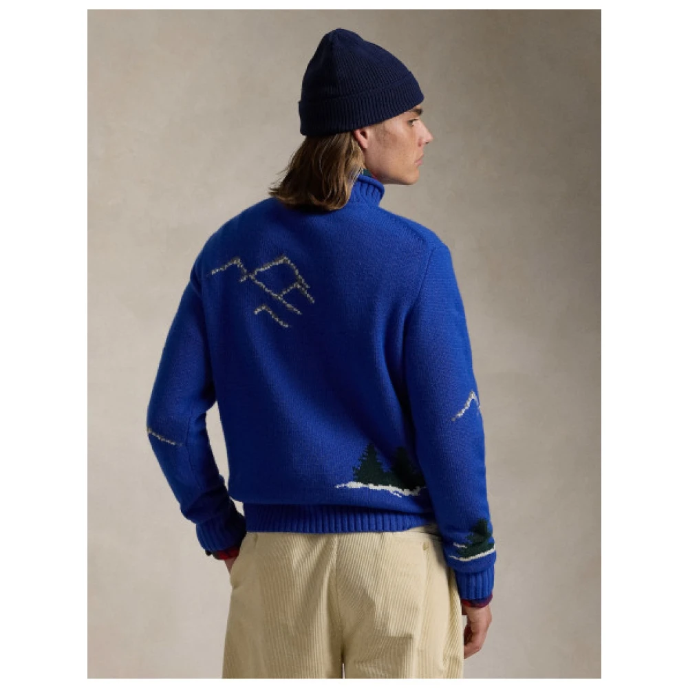 Polo Ralph Lauren Intarsia Wol Polo Bear Familie Trui Blue Heren