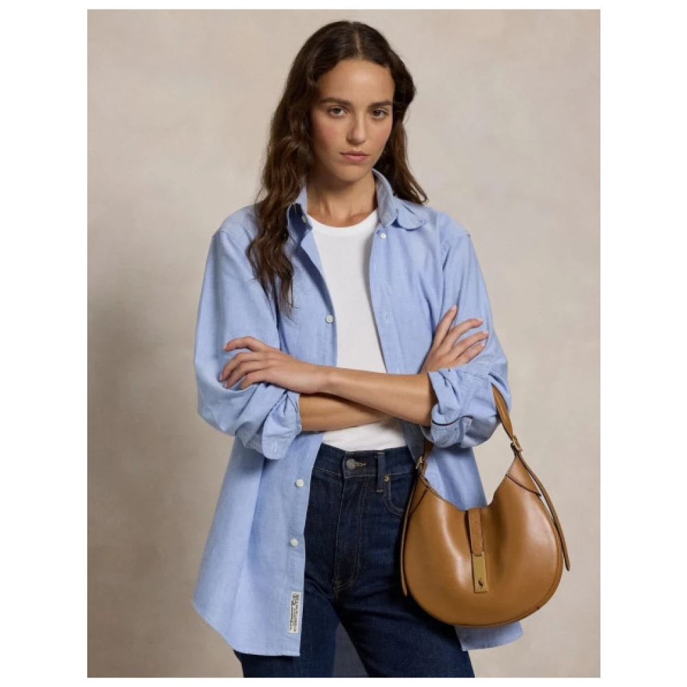 Polo Ralph Lauren Leren schoudertas Polo ID zadelformaat Beige Dames