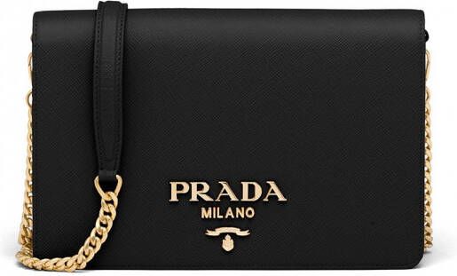 zwart geweven raffia design geborduurd logo op de voorkant driehoekig email logo schouderband met schakels omslag met magnetische sluiting hoofdvak steekvak aan binnenkant