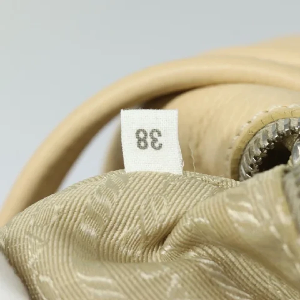 Merk: Prada Kleur: Beige Materiaal: Synthetisch Afmetingen: Serienummer: 38Inbegrepen: Naamlabel / Garantiekaart Land van herkomst: Itali Staat: B - goede staat TBC referentie (Sku): 1723698294088325 Staat: Goed, maar gebruikt. Een goed maar gebruikt item is gedragen en mogelijk gewassen, maar zal in goede staat verkeren en goed verzorgd zijn. Het item zal zichtbare slijtage vertonen, maar de gebreken zullen minimaal zijn. Deze moeten worden vermeld en zichtbaar zijn op foto's.