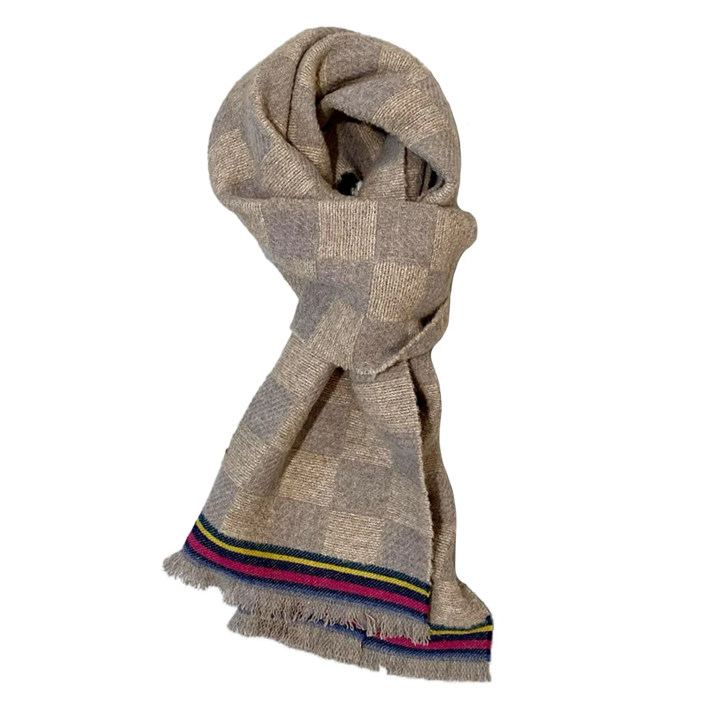 Blijf warm en stijlvol met deze PS By Paul Smith Wintersjaal in beige. Gemaakt van een mix van 74% wol, 15% acryl, 9% polyester en 2% polyamide, meet deze sjaal 180 x 33 cm. Alleen handwas.