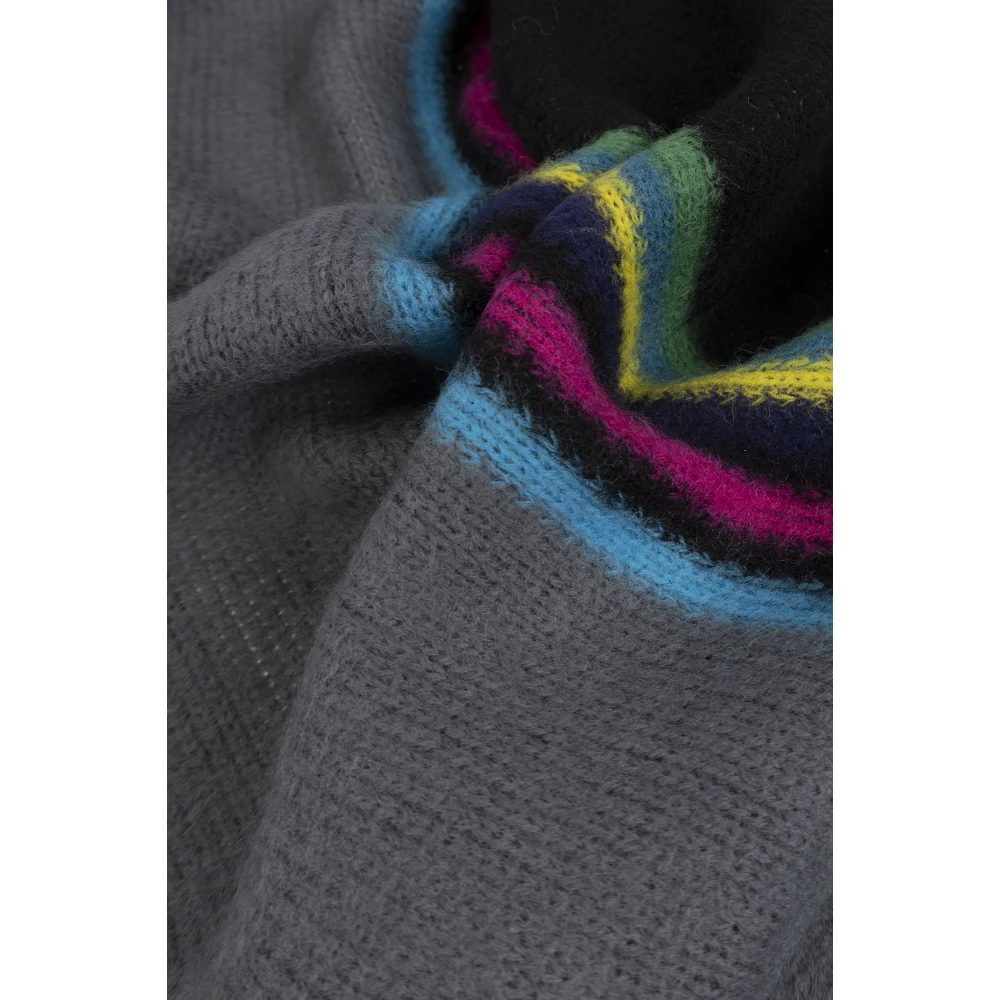 Maak kennis met de Gestreepte Patroon Sjaal uit de exclusieve PS Paul Smith-collectie, die klassieke Britse elegantie belichaamt met een vleugje moderne speelsheid. De harmonieuze compositie van veelkleurige strepen in tinten grijs, zwart, blauw, roze, groen en geel maakt dit product tot een waar kunstwerk. Gemaakt van de hoogste kwaliteit wol, garandeert de sjaal ongelooflijk draagcomfort en tastbaar genot. De delicate franjeafwerking voegt verfijning toe, en het geborduurde