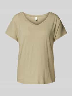 Dit T-shirt voor dames van Q/S by s.Oliver is gemaakt van een linnenmix. Het model heeft een V-hals en korte mouwen.