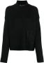 Zwart, kasjmier, gebreid materiaal, logo versiering en lange mouwen.