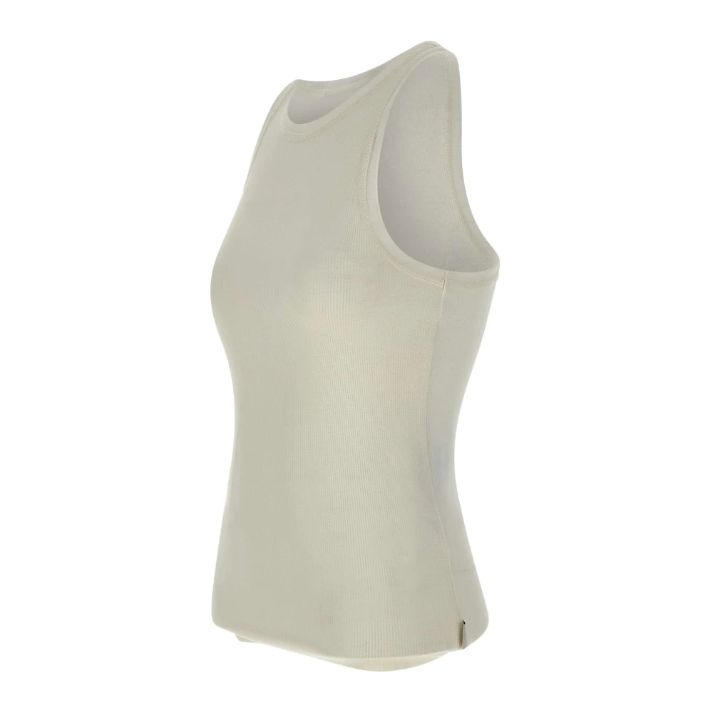 Upgrade je garderobe met deze 'Jersey Tank Top' van Remain Birger Christensen. Gemaakt van witte viscose met een micro-geribbelde verticale weefsel, deze mouwloze top heeft een ronde halslijn en voile piping voor een vleugje elegantie. Ontworpen in een regular fit, perfect voor elke gelegenheid.