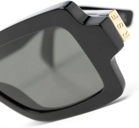 Zwart, acetaat, goudkleurig materiaal, gekleurde glazen en rechte pootjes. Deze bril wordt verkocht met een beschermhoes..