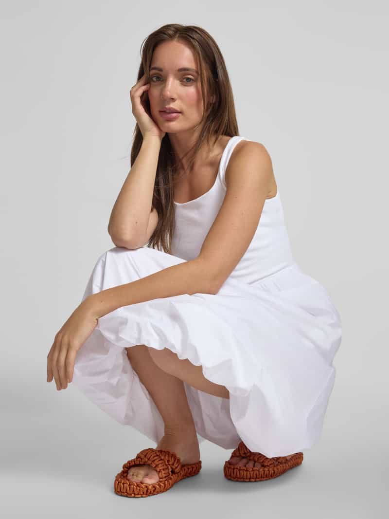 Ballonjurk van Rich & Royal. Mix van katoen en elastaan. Getailleerd model. Knielang. Ronde hals. Ruglengte bij maat S: 102 cm. Borstomvang bij maat S: 35 cm