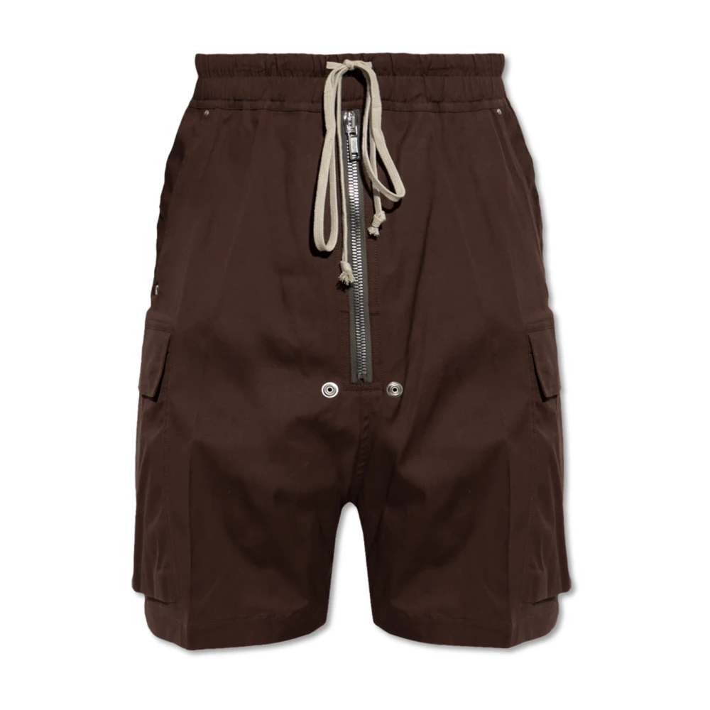 taupe grijs elastische tailleband met trekkoord ritssluiting aan de voorkant twee paspelzakken aan de zijkant twee paspelzakken aan de achterkant