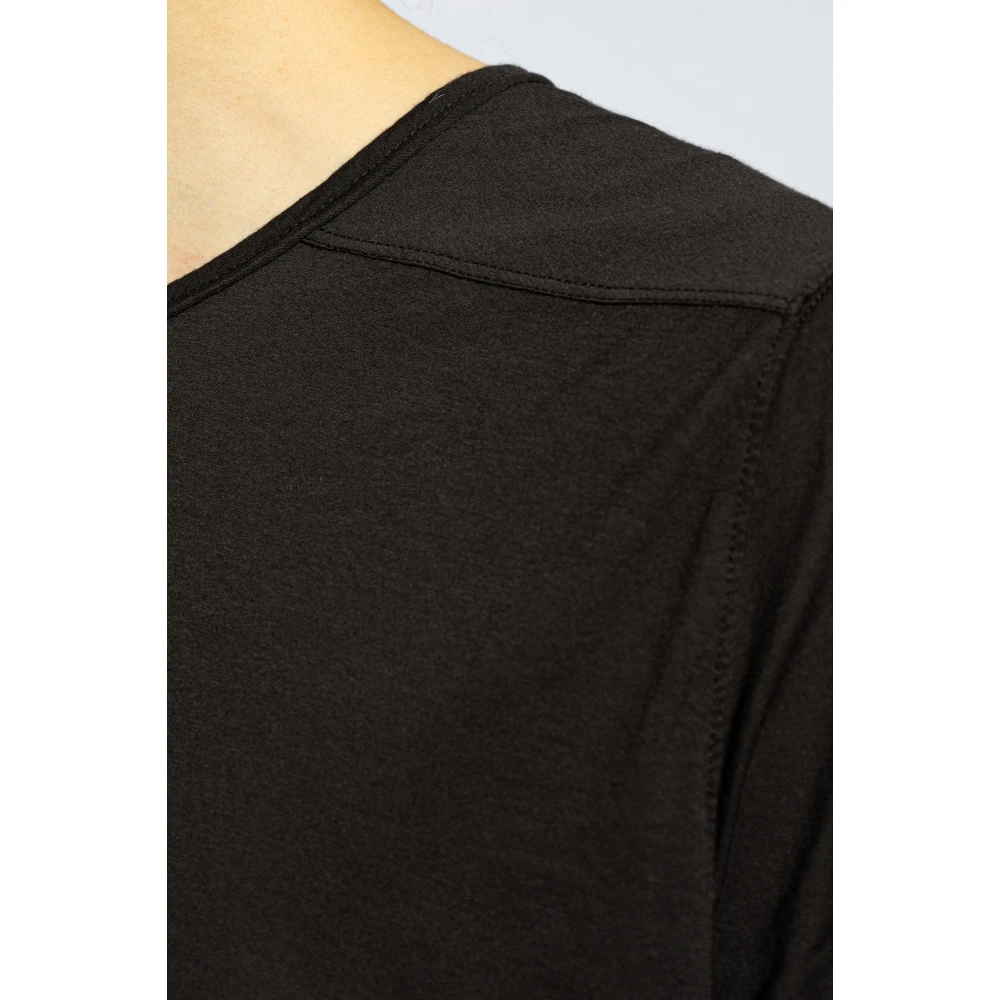 Zwarte Level T crewneck T-shirt van Rick Owens Drkshdw. Gemaakt van katoen, dit korte mouw ontwerp heeft de kenmerkende merkband in zwart aan de zoom, centrale stiksels aan de achterkant en een geribbelde ronde hals. Modelmaten Lengte: 193 cm Borst: 95 cm Taille: 82 cm Heupen: 93 cm Model draagt maat: L