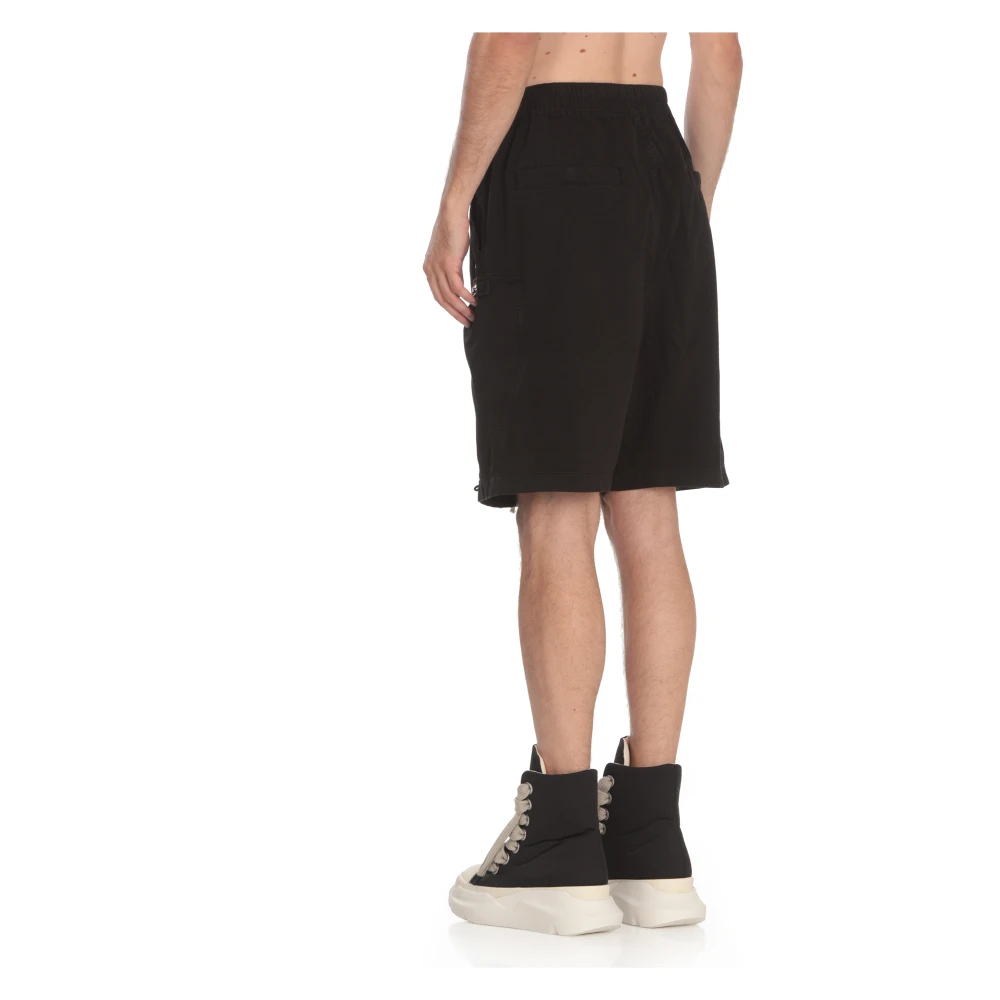 Upgrade je casual garderobe met deze zwarte Rick Owens Drkshdw katoenen bermuda shorts voor heren. Voorzien van een elastische taille met trekkoord, ritssluiting aan de voorkant, twee achterzakken met knopen, twee zijdelingse steekzakken en twee ritssluiting zakken op de benen. Het model is 190 cm lang en draagt maat L.