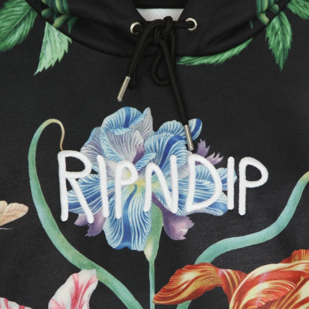 Blijf stijlvol en comfortabel met deze Ripndip hoodie met lange mouwen met een verstelbare trekkoord capuchon, voorzak, geribbelde manchetten en onderkant. Het Ripndip-logo is geborduurd op de voorkant met een all-over bloemenprint. Gemaakt van 100% polyester stof. Hand- of machinewas volgens het label.