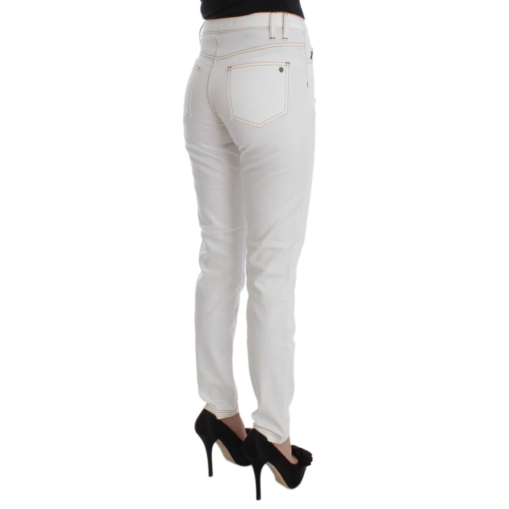 Stap in elegantie met deze witte slim-fit jeans van Roberto Cavalli, ontworpen om je rondingen te omarmen en een luxueuze, maar comfortabele pasvorm te bieden. Belangrijkste kenmerken: Wit | Katoen | Elastaan | Knoop- en ritssluiting | Subtiele logo-accenten | Afmetingen en pasvorm: Slim fit | Samenstelling en onderhoud: 98% Katoen | 2% Elastaan | Machinewas koud, droogtrommel laag.