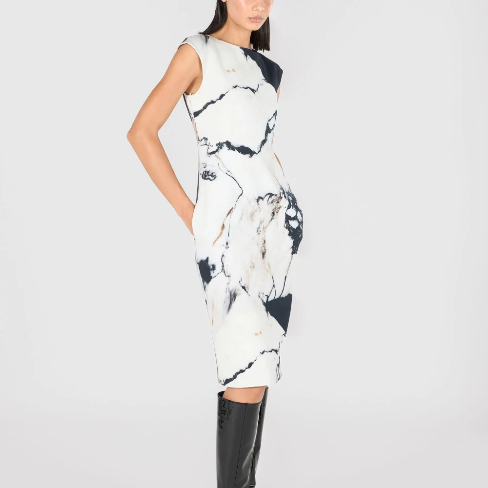 Upgrade je garderobe met deze midi-jurk van Roberto Cavalli met een prachtige marmerprint. Met een boothals en kapmouwen is deze jurk perfect voor elke gelegenheid. Gemaakt van 96% VI en 4% EA stof. Modelhoogte: 178 cm, buste: 73 cm, taille: 60 cm, heupen: 88 cm.