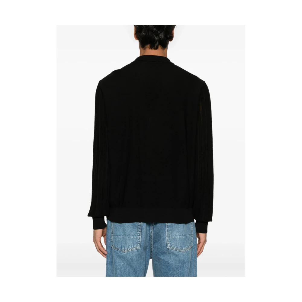 Upgrade je stijl met deze zwarte cardigan van Roberto Collina met knoopsluiting aan de voorkant, lange mouwen, geribbelde manchetten en zoom, en inkepingen in de revers.