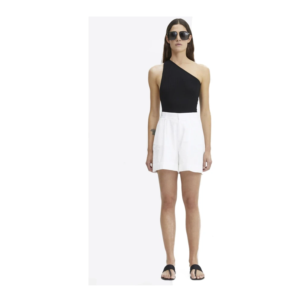 Upgrade je garderobe met de Navista mouwloze asymmetrische jersey top van Rodebjer. Dit veelzijdige stuk heeft een brede uitsnede aan de achterkant voor een unieke uitstraling. Combineer het met Remain Kit shorts voor een chique look. Ontworpen voor een nauwsluitende pasvorm, deze zwarte top is gemaakt van viscose, nylon en elastaan. Rodebjer is een modern mode merk bekend om zijn casual elegantie en gedefinieerde silhouetten. Perfect voor zelfverzekerde vrouwen die kwaliteit en stijl waarderen.