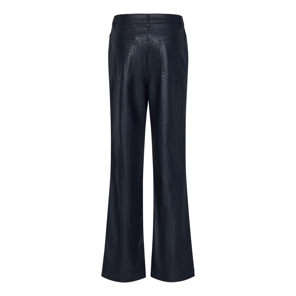 Upgrade je garderobe met deze donkerblauwe gevlochten straight leg broek van imitatieleer van Rotate Birger Christensen. Deze broek is ontworpen voor een chique en verfijnde look en biedt zowel stijl als comfort. Belangrijkste kenmerken: Blauw | 100% Polyester | Gevlochten imitatieleer | Straight leg | Afmetingen en pasvorm: Wijde pasvorm | Samenstelling en onderhoud: 100% Polyester | Uitsluitend chemisch reinigen