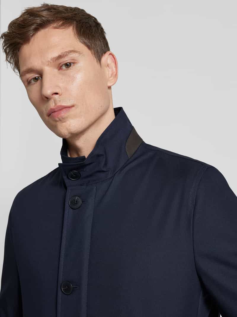 Lange herenjas van Roy Robson. Katoenmix met stretchgehalte. Recht model. Opstaande kraag. Doorknoopsluiting. strookzak. Ruglengte bij maat 50: 91 cm. Schouderbreedte bij maat 50: 46 cm. Borstomvang bij maat 50: 41 cm. Mouwlengte bij maat 50: 65 cm