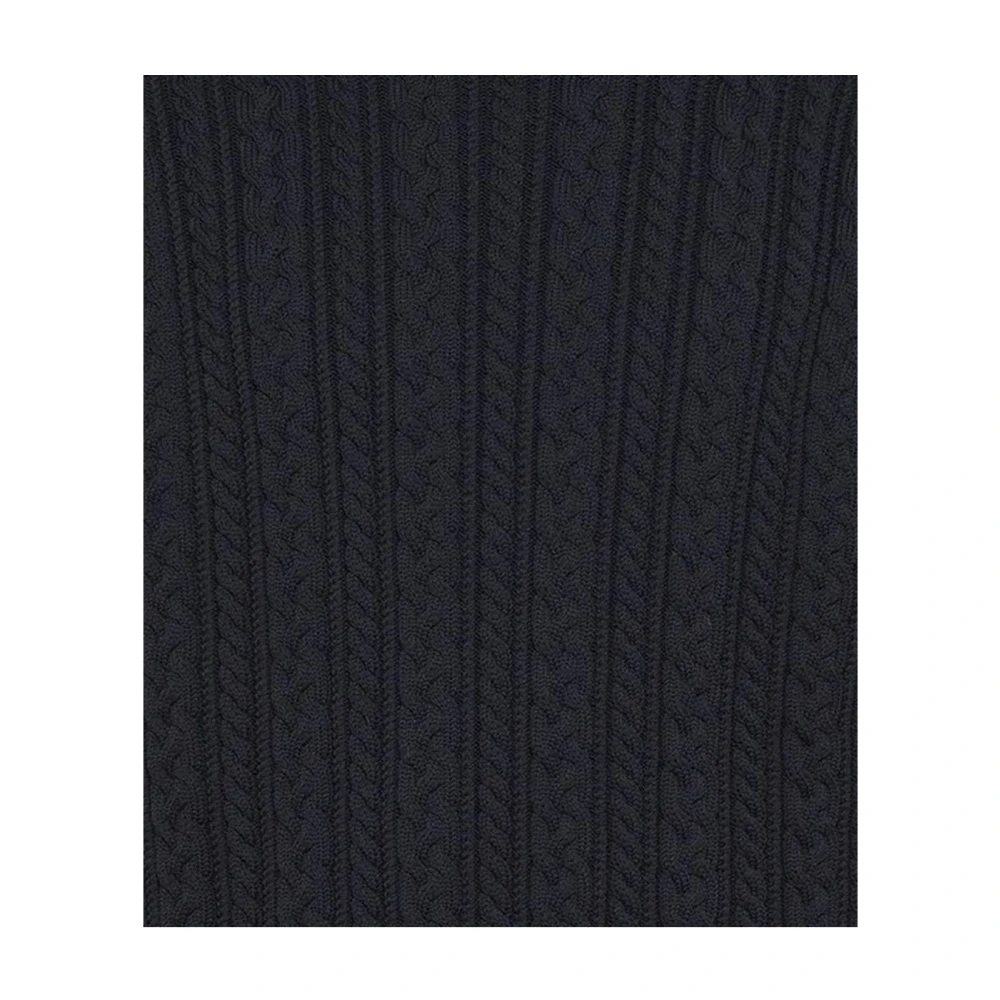 Upgrade je wintergarderobe met deze Zwarte Kabel Gebreide Coltrui met Hoge Hals, ontworpen voor zowel stijl als functionaliteit. Gemaakt van 100% polyester technische stof, biedt het een dicht nautisch patroon en geribbelde gebreide afwerking voor een perfecte pasvorm. Belangrijkste kenmerken: Zwart | 100% Polyester | Hoge hals | Kabel gebreid | Geribbelde gebreide afwerking | Afmetingen en pasvorm: Normale pasvorm | Samenstelling en onderhoud: 100% Polyester | Machinewas koud, droogtrommel laag