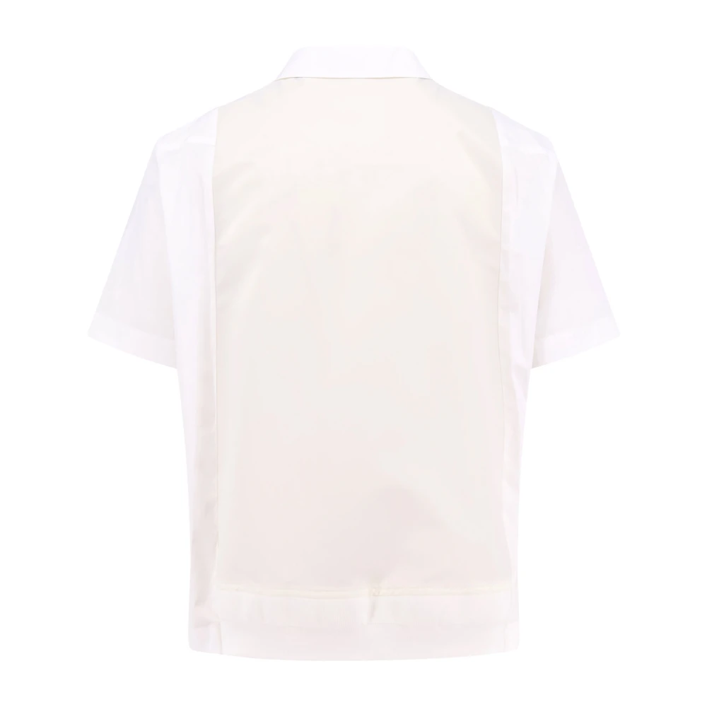 Upgrade je casual garderobe met deze Sacai katoenen shirt met een nylon inzet aan de achterkant. Dit korte mouw shirt voor mannen wordt geleverd met een klassieke kraag, sluiting met knopen en opgestikte zakken aan de voorkant. Gemaakt van een mix van katoen en nylon.