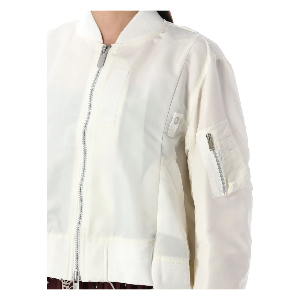 Upgrade je buitenkledingcollectie met deze prachtige Nylon Twill Blouson van Sacai. De klassieke bomberkraag, unieke asymmetrische zoom en chique details maken het een must-have voor elke stijlvolle vrouw. Perfect voor laagjes, het is zowel modieus als functioneel.
