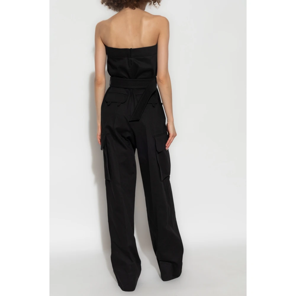 Maak kennis met de Cassandre Strapless Jumpsuit van Saint Laurent, een mix van klassieke elegantie en modern design. Dit item is perfect voor elke gelegenheid en biedt een verfijnd silhouet met zijn strapless top en wijde pijpen. Belangrijkste kenmerken: Zwart | Katoen | Haak- en ritssluiting aan de achterkant | Zijzakken met knoopsluiting | Verstelbare band met knoop bij de zoom | Strapless | Ton-sur-ton stiksels | Wijde pijpen | Ton-sur-ton riem met riemlussen | Afmetingen en pasvorm: Getailleerde pasvorm in het bovenste gedeelte met uitlopende pijpen | Samenstelling en onderhoud: 100% Katoen | Machinewas koud, droogtrommel laag.