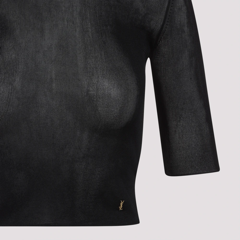 Verrijk je garderobe met de Saint Laurent Cassandre Knit Top, vervaardigd uit luxueuze 100% viscose. Dit elegante zwarte item combineert stijl en comfort, waardoor het een perfecte keuze is voor elke gelegenheid. Belangrijkste kenmerken: Zwart | 100% Viscose | Afgeronde halslijn | Korte mouw | Detail met monogram | Samenstelling en onderhoud: 100% Viscose | Handwas