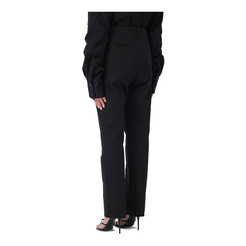 Upgrade je garderobe met deze elegante Saint Laurent katoenen broek. Gemaakt van 100% katoen, hebben ze een stijlvol zwart ontwerp, handige zakken en een comfortabele pasvorm, perfect voor elke gelegenheid. Ervaar luxe en veelzijdigheid vandaag!