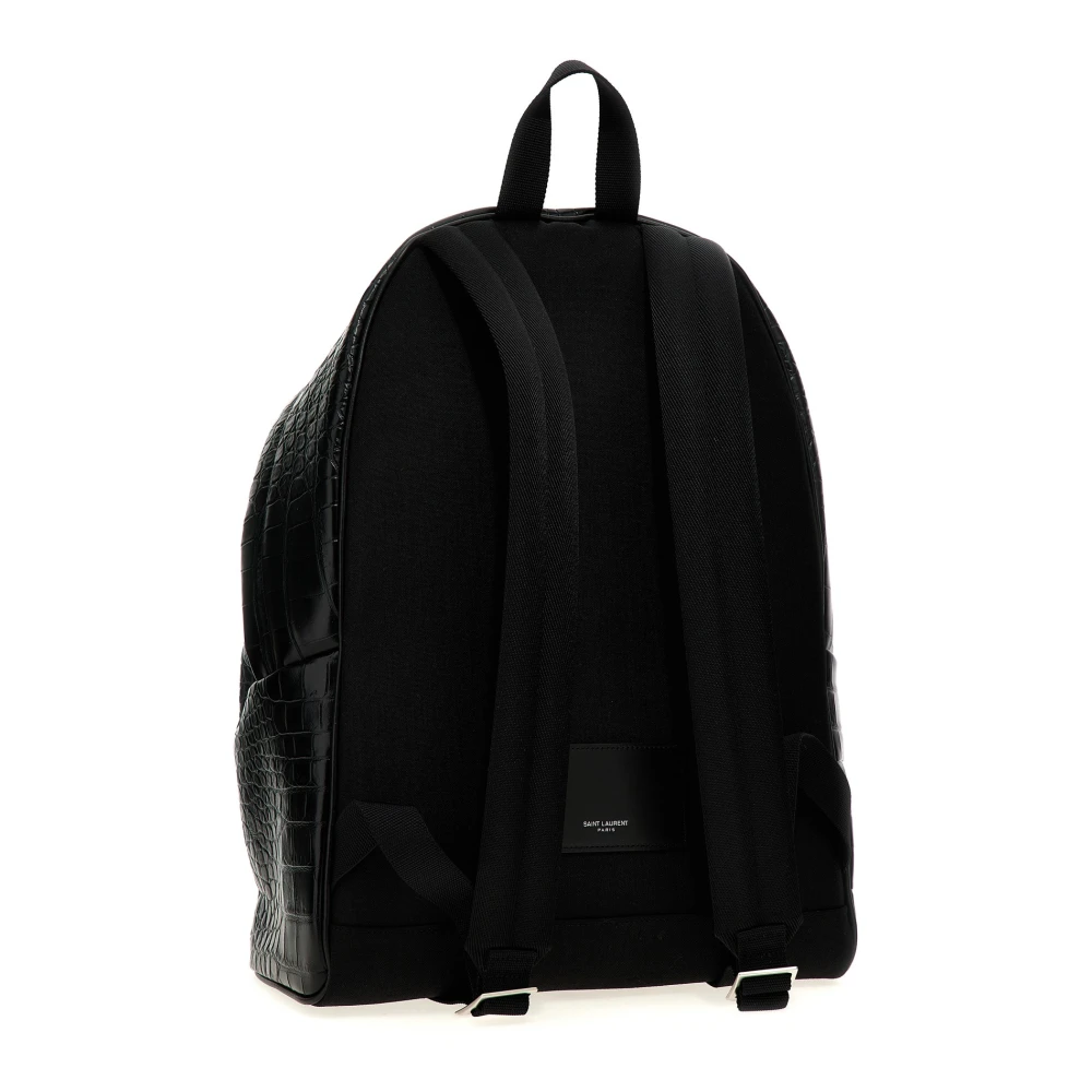 Upgrade je stijl met deze Saint Laurent-rugzak voor mannen. Met een externe zak met rits en reliflogo, ritsvak, gevoerde sleufzak, dubbele ritssluiting en een handvat met afneembare leren schouderriem. Gemaakt van 100% kalfsleer in Itali. Afmetingen: 31 x 41 x 22 cm.
