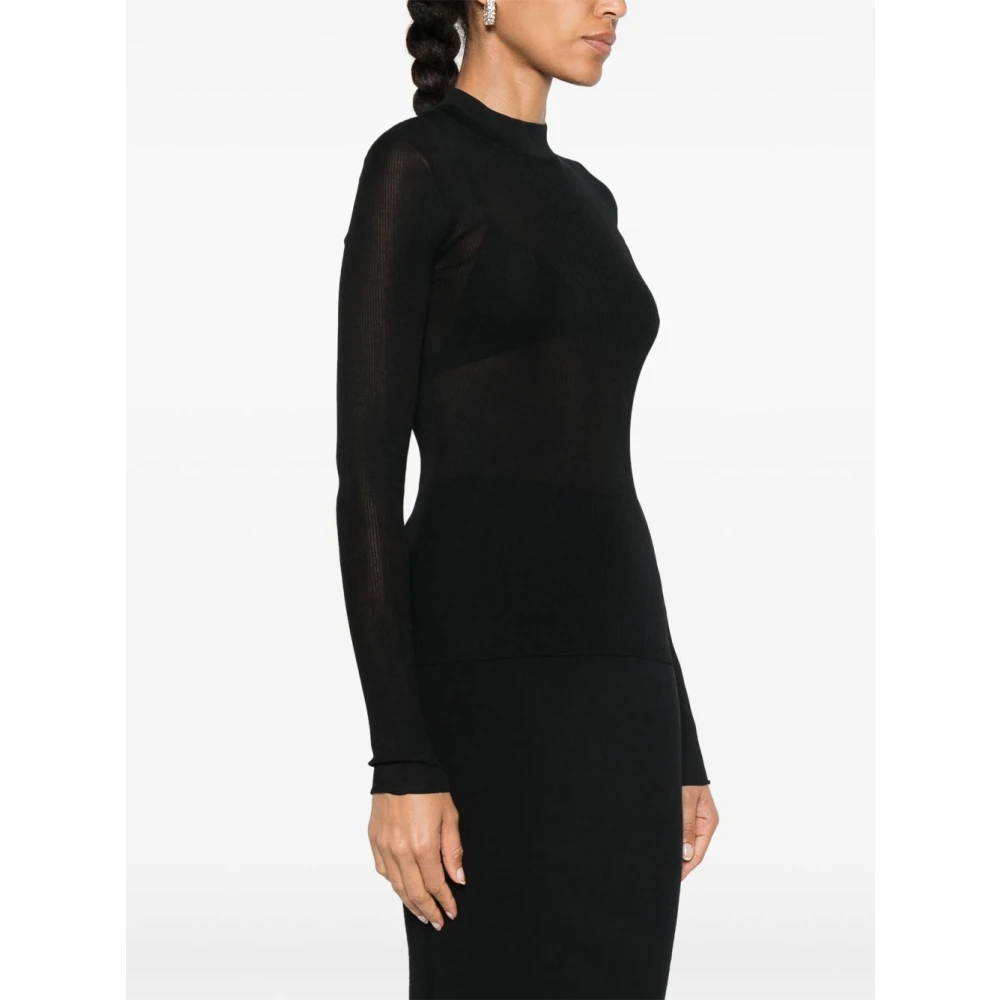 Verrijk uw garderobe met de Ribgebreide trui Cassandre van zijde van Saint Laurent. Dit luxueuze kledingstuk heeft een opstaande kraag, versierd met de iconische metalen Cassandre, wat een verfijnde toets geeft aan elke outfit. Belangrijkste kenmerken: Zwart | Zijde | Opstaande kraag | Lange mouwen | Metalen Cassandre-versiering | Afmetingen en pasvorm: Aansluitend silhouet | Samenstelling en onderhoud: 100% Zijde