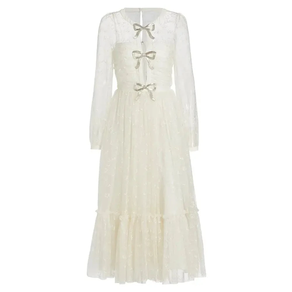 Verhoog je stijl met deze prachtige lange zijden jurk van Saloni. Met een prachtige bloemenprint is deze jurk perfect voor elke gelegenheid. De V-hals en lange mouwen voegen een vleugje elegantie toe, terwijl de sluiting met bedekte knopen en de voorste split een moderne twist bieden. Gemaakt van 100% zijde, biedt deze jurk zowel comfort als luxe. Ontworpen door Saloni, een gerenommeerd merk in de mode-industrie. Koop nu en maak een statement met deze prachtige jurk.