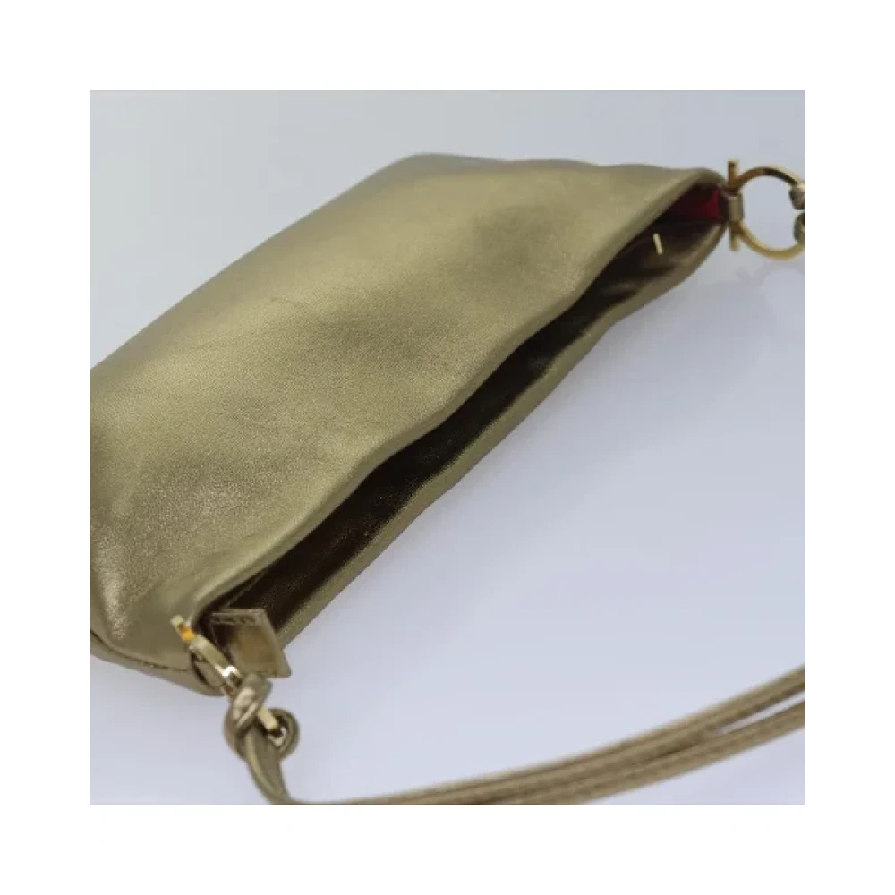 Merk: Salvatore Ferragamo. Kleur: Goud. Materiaal: Leer. Afmetingen: B25cm x H12cm (Ongeveer) / Schouderband 19cm (Ongeveer). Afmetingen: B9, 8 x H4, 7 inch (Ongeveer) / Schouderband 7, 5 inch (Ongeveer). Stijl: Schoudertas. Gemaakt in: Itali. Staat: Buitenkant. oppervlakte wrijving krassen lichte vormverlies; Metalen fittingen. krassen; Binnenkant. wrijving deels krassen; Hoeken. wrijving; Geur. bewaar-/opslaggeur Staat: Gedragen met liefde. Een item dat met liefde is gedragen, zal vaak zijn gedragen en zal daarom grotere en meer zichtbare defecten hebben zoals vlekken. Deze moeten worden vermeld en zichtbaar zijn op foto's.