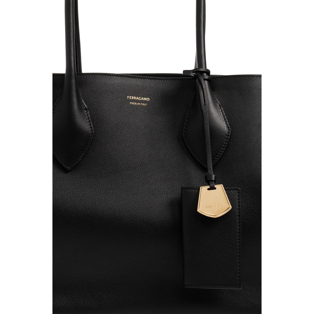 Zwarte Stella schoudertas van Ferragamo. Gemaakt van kalfsleer, heeft dit ontwerp een goudkleurig reliflogo, decoratieve gevouwen zijkanten, twee halfronde schouderbanden, een afneembaar tasje met een kaartsleuf en logo-gegraveerd detail, hardware van goudkleurig metaal en n interne compartiment met een ritssluiting. Hoogte: 28cm Breedte: 40cm Afmetingen van het model Hoogte: 177cm Buste: 83cm Taille: 61cm Heupen: 89cm