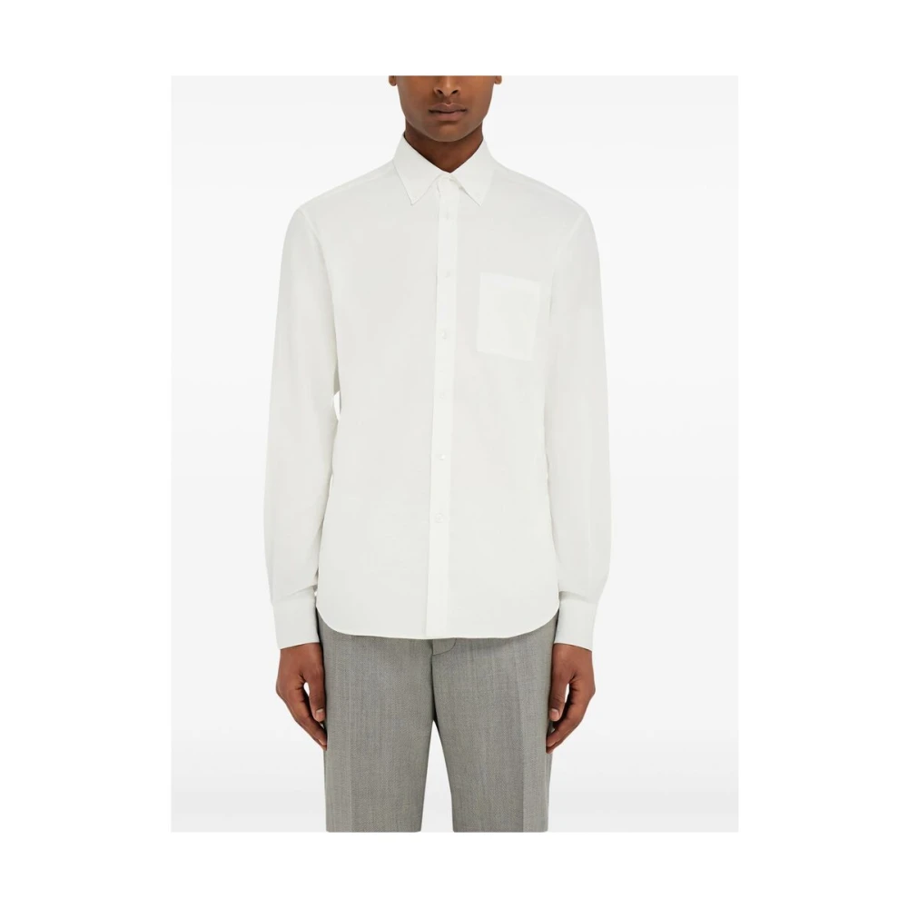 Upgrade je casual stijl met dit witte katoenen Salvatore Ferragamo overhemd. Met lange mouwen, knoopsluiting aan de voorkant, klassieke kraag, borstzakje, knoopmanchetten en een afgeronde zoom.