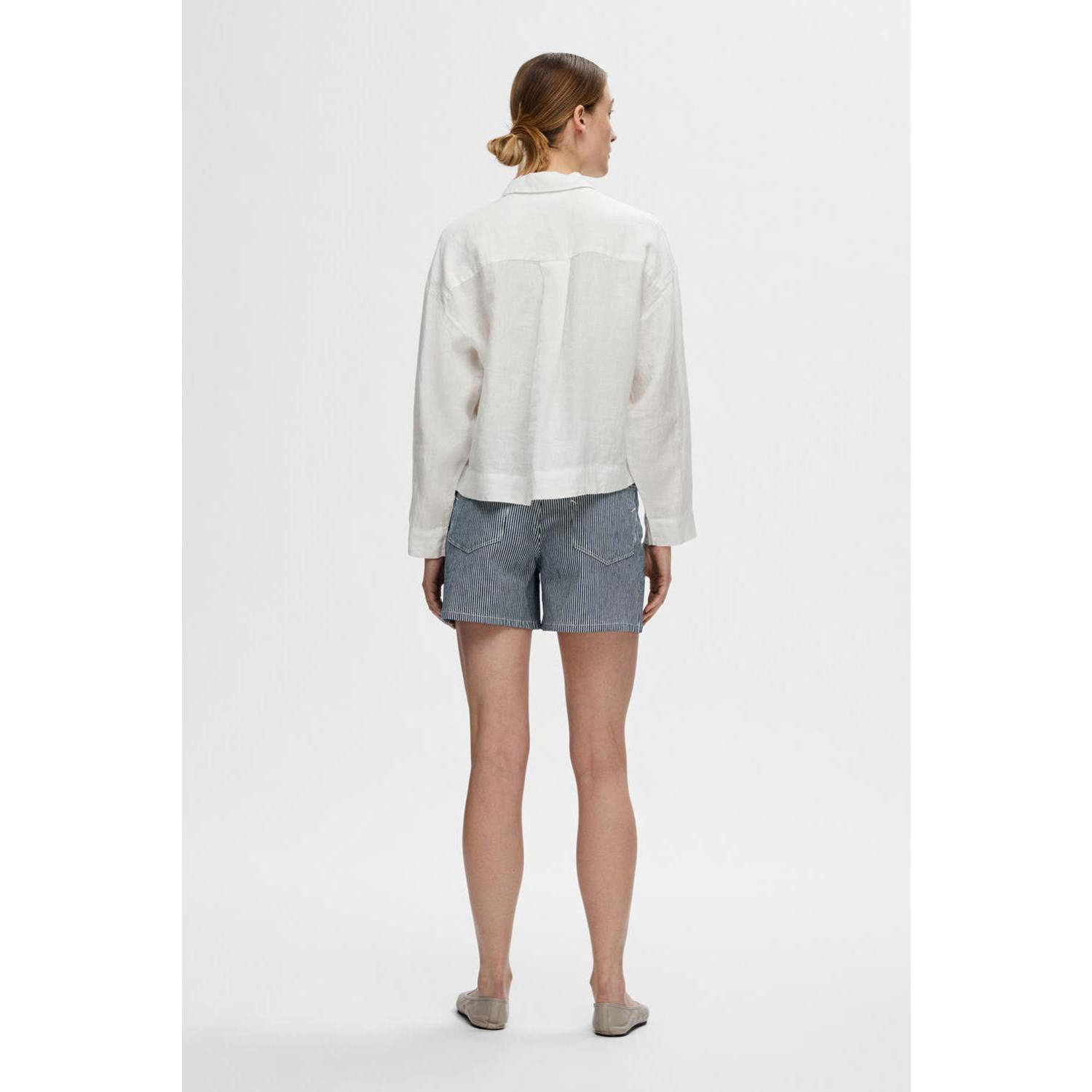 Deze blouse van SELECTED FEMME is gemaakt van 100% linnen. De klassieke kraag en knoopsluiting geven een nette uitstraling. Met lange mouwen biedt het een stijlvolle en tijdloze look die geschikt is voor verschillende gelegenheden.