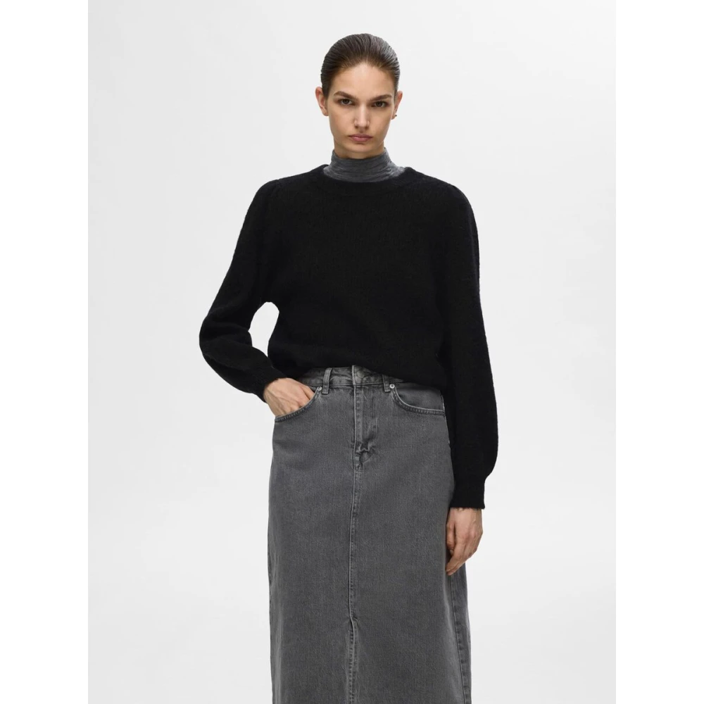Gebreide damespullover van SELECTED FEMME. Wolmix met stretch. Recht model. Model 'SLFLULU' . Melangelook. Ronde hals. Ballonmouwen. Ruglengte bij maat S: 52 cm. Mouwlengte bij maat S: 64 cm