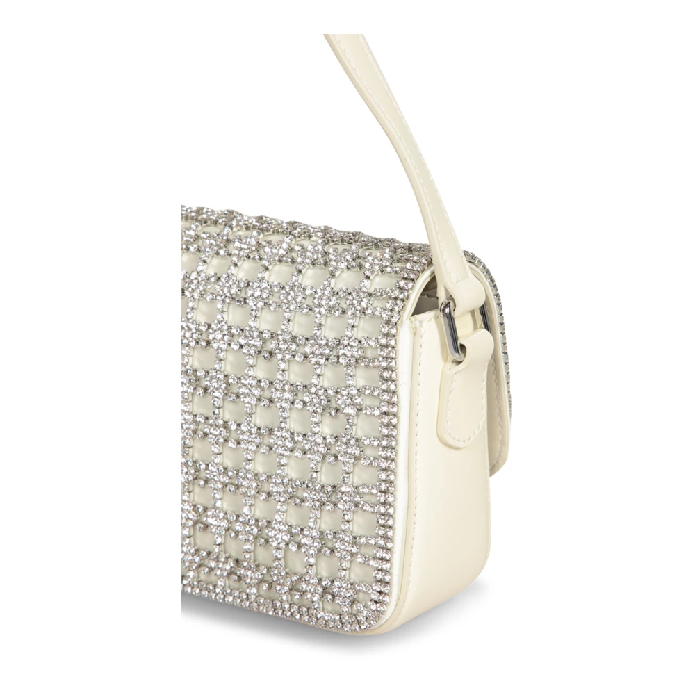 Verrijk je avondlook met deze prachtige Self Portrait crme Baguette-tas versierd met sprankelende kristallen. Perfect om een vleugje elegantie toe te voegen aan speciale gelegenheden. Voorzien van een verstelbare leren band en veilige sluiting. Gemaakt van 100% glas, stof, metaal en kalfsleer