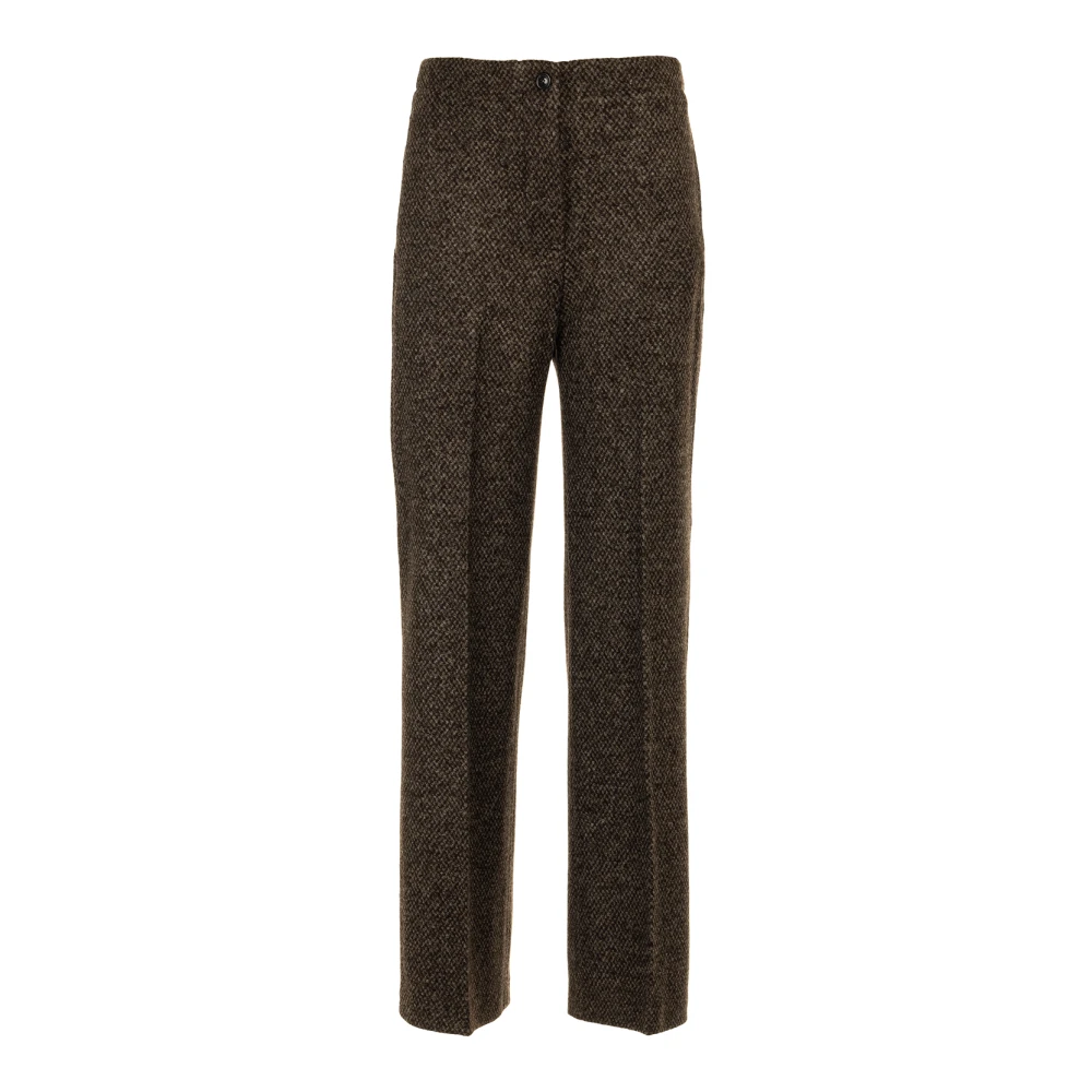 Zeventig chocoladebruine wijde broek voor vrouwen met een elastische tailleband en twee diagonale zakken aan de zijkanten.