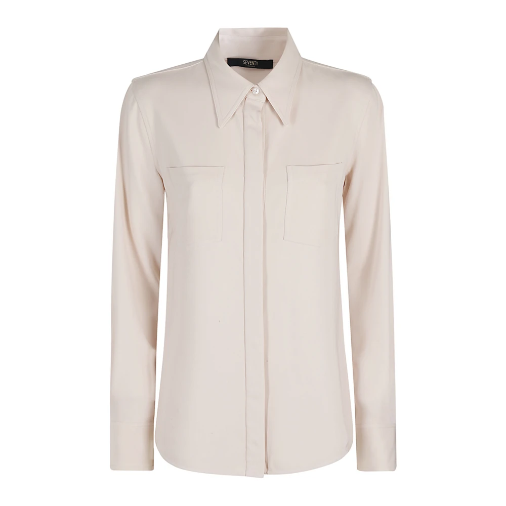 Seventy Dames 1970 Poplin Stretch Shirt in Wit. Effen kleur shirt met kraag, lange mouwen en knoopsluiting. Model: Ca 1394-220672001 Samenstelling: 100% CO.