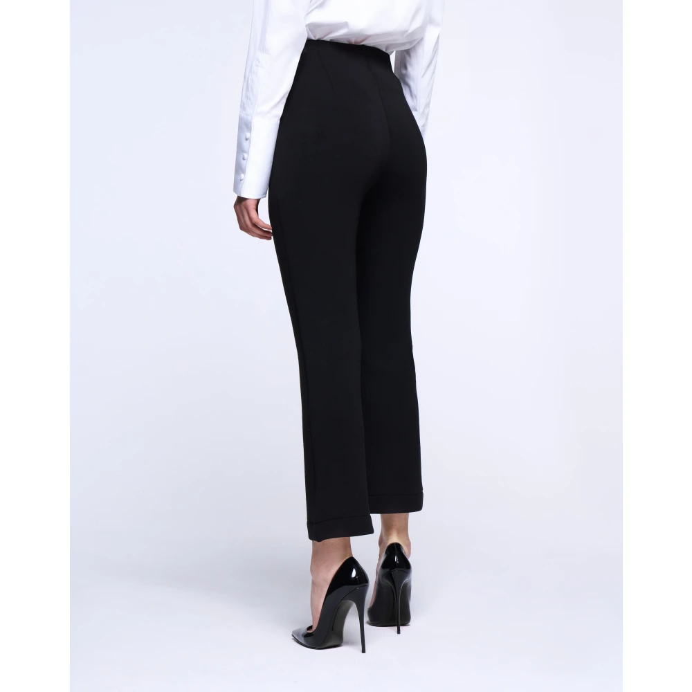 Hoge taille sigarettenbroek. Rechte snit en sluiting aan de voorkant met knoop. Enkelboeien. SKU Cva 24016Pa Samenstelling 10% Elastan 76% Polyester 14% Viscose